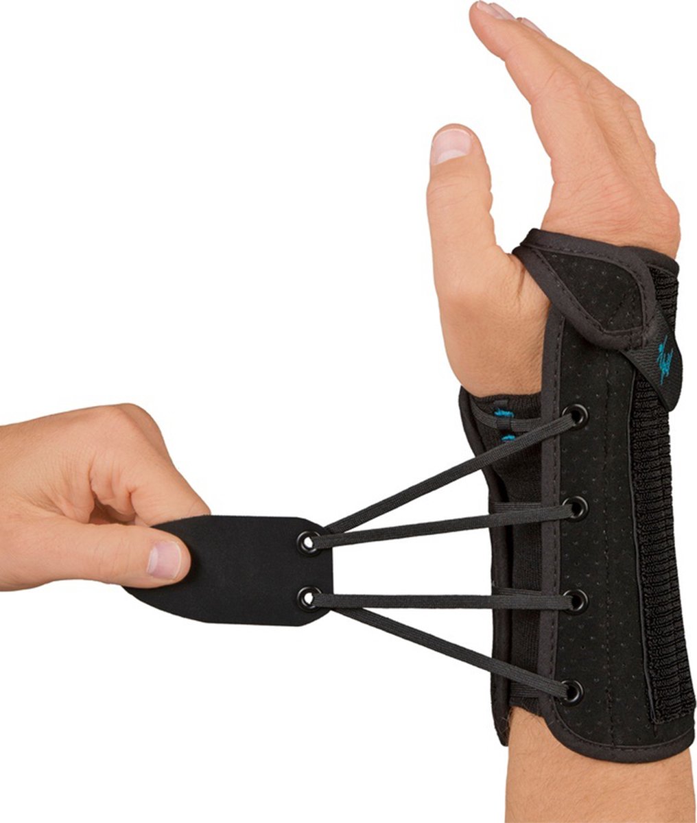 Die Wrist Lacer ist eine Handgelenkorthese mit der höchsten Stützklasse. Dies liegt an den (formbaren) Verstärkungsrippen aus Aluminium. Die Handgelenkbandage hat eine kreisförmige Schnürung, die sich sehr einfach mit einer Hand schließen lässt. Die Handgelenkstütze nähert sich der Stabilität und Unterstützung von Gips, zusätzlich ist die Handgelenkstütze mit einer Länge von 20 cm oder 26,5 cm erhältlich. Die lange Version bietet zusätzlichen Halt über dem Handgelenk.